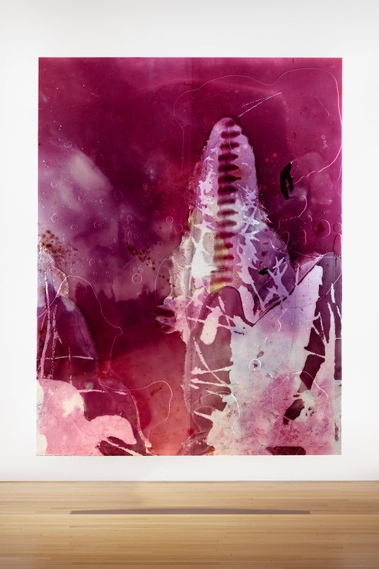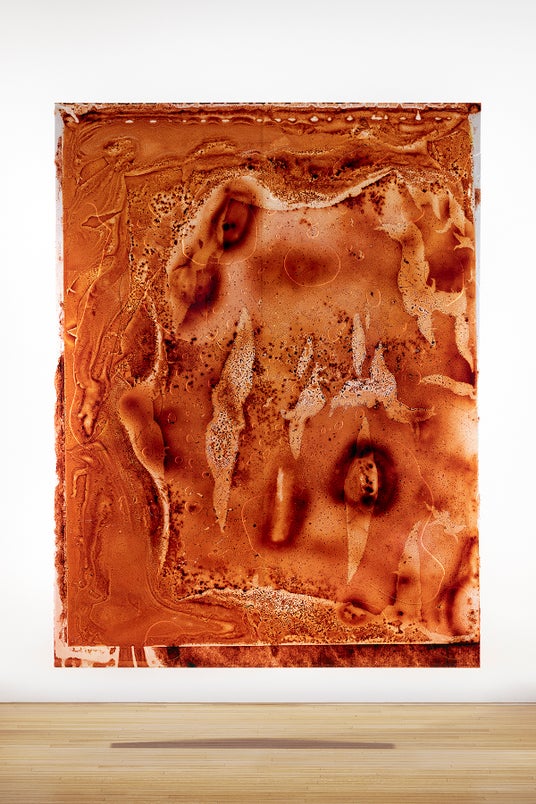 1988年、大竹は露光テスト用に使用された後、廃棄されたポラロイド・フィルムを入手したことがきっかけとなり、〈網膜〉シリーズの着想を得て、1989年から1990年代初頭にかけて、〈網膜〉シリーズの制作に集中的に取り組みました。その後も断続的にこのシリーズの制作を続けてきましたが、大竹はアトリエに30年以上保管してきたフィルムを用いて、本展のために新たな大型の〈網膜〉12点を制作しました。ここでは、2024年12月にMIMOCA 館内での制作を経て完成した、新作〈網膜〉の一部をご紹介します。