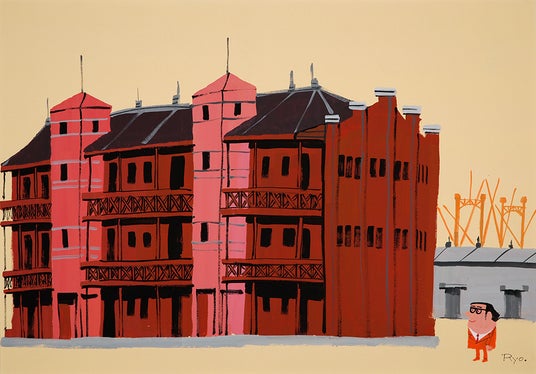 柳原良平《新港埠頭赤煉瓦倉庫》1978年 ポスターカラー、紙 72.2×102.5cm