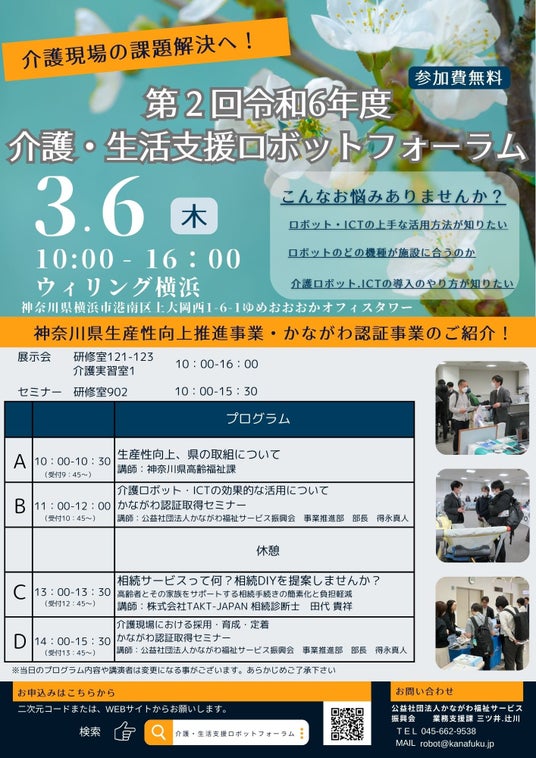 3月6日に横浜市で開催される展示会「令和6年度第2回介護・生活支援ロボットフォーラム」にてサービス詳細を説明いたします。詳細はセミナーにても発表をしますので是非お気軽に講座の御予約をお願いいたします。