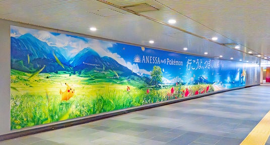 アジア売上No.1※1サンケアブランド「アネッサ」は、「ポケモン」の「ピカチュウ」「ニャオハ」「ポッチャマ」とコラボレーションした「アネッサ パーフェクトUV スキンケアミルク NA」の限定パッケージ商品【全1品 パッケージデザイン全3種:ノープリントプライス】を、2025年4月21日(月)より日本国内で数量限定発売しました。2021 年以来4 年ぶりとなるコラボ第二弾 発売を記念して、『行こうよ、つぎの冒険へ。』をテーマにした交通広告を2025年4月28日(月)~5月4日(日)に渋谷駅構内に掲出。ビービーメディアでは資生堂クリエイティブ株式会社のクリエイティブチームのディレクションのもと、本広告のデザイン・制作を担当しました。