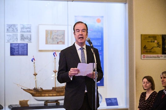 セレモニーの冒頭、ヒルス ベスホー・プルッフ駐日オランダ王国特命全権大使は「1600年にオランダ人航海士が初めて日本の海岸に降り立って以降、私たちは一度も日本から離れたことはありません。この間、私たちはそれぞれに世界の舞台で真摯に責任を果たす豊かな国家へと成長しました。」「私は、両国が現代の課題に立ち向かうために世界が必要としている国際協力を進めている姿を目にし、とても誇りに思います。」と述べました。