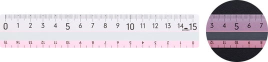 「ヨクミエルーラー」はメモリの下に特殊印刷を施すことで、濃い色の上や白地に印刷された物の上でもメモリが見やすい直定規(15cm)です。