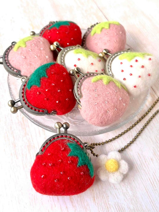 haruru*woolfelt(はるる*うーるふぇると) 「いちごの豆がま口」 2,750円~2,915円