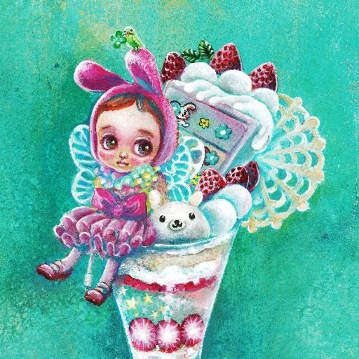 KYOKUMA 「マイルームパフェ」複製画 13,200円 パフェを部屋とする可愛い女の子のシリーズ