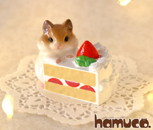hamuco 「ケーキとハムスター」 2,200円 ケーキに寄り添って食べたそうにしている食いしん坊ハムちゃん