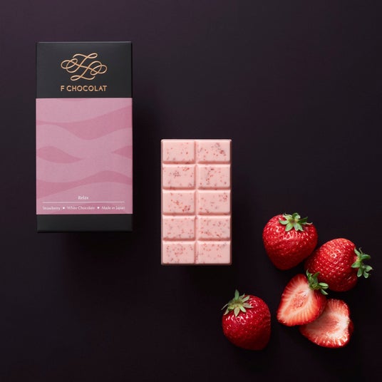 F CHOCOLATのショコラタブレットは、「日常を満たす、ちょっとしたご褒美」をコンセプトに誕生しました。このたび、新たに登場する「ショコラタブレット Relax×Strawberry」は、ブランドのこだわりをさらに追求し、フルーツの魅力を最大限に引き出すことを目指して開発されました。