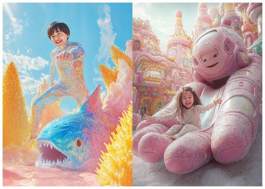 子どもたちの空想をもとに、まるでその世界に入り込んだようなビジュアルを生成AIが生成。