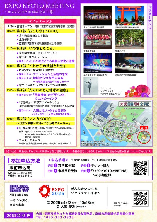 「EXPO KYOTO MEETING」は事前予約が必要となります。イベントは入場無料(抽選)ですが、万博の入場チケットが必要になります。