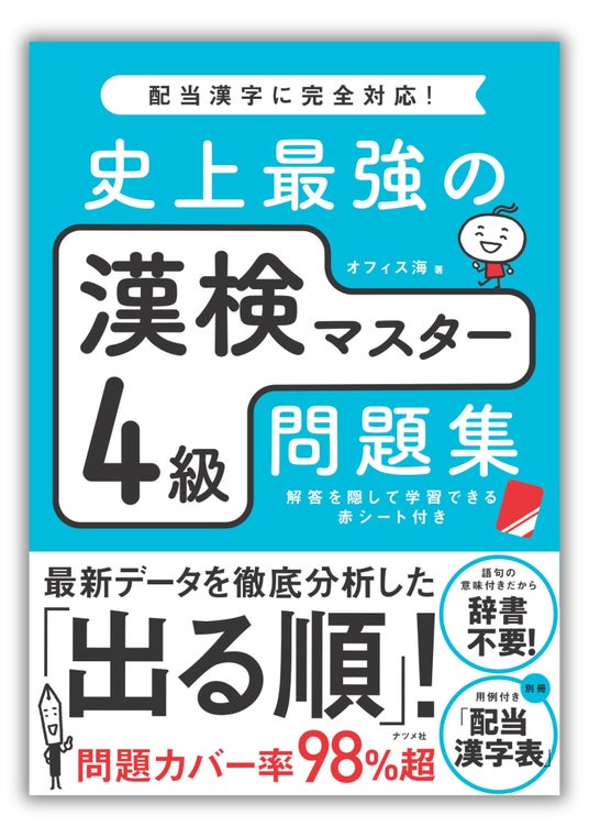 実用書や児童書、教養書を発行する出版社、株式会社ナツメ社(東京都千代田区、代表取締役:田村正隆)は、既刊で好評の漢検準1級、2級、準2級、3級に続き、漢字能力検定4級合格のための問題集、『史上最強の漢検マスター4級問題集』(https://amzn.asia/d/brLcPJ5)を1月17日に発売します。