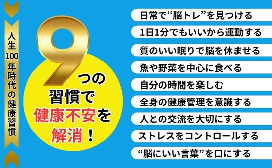 人生100年時代の健康をサポートする『脳が喜ぶ9つの習慣 老化を予防し若返る!』が4月16日に発売!