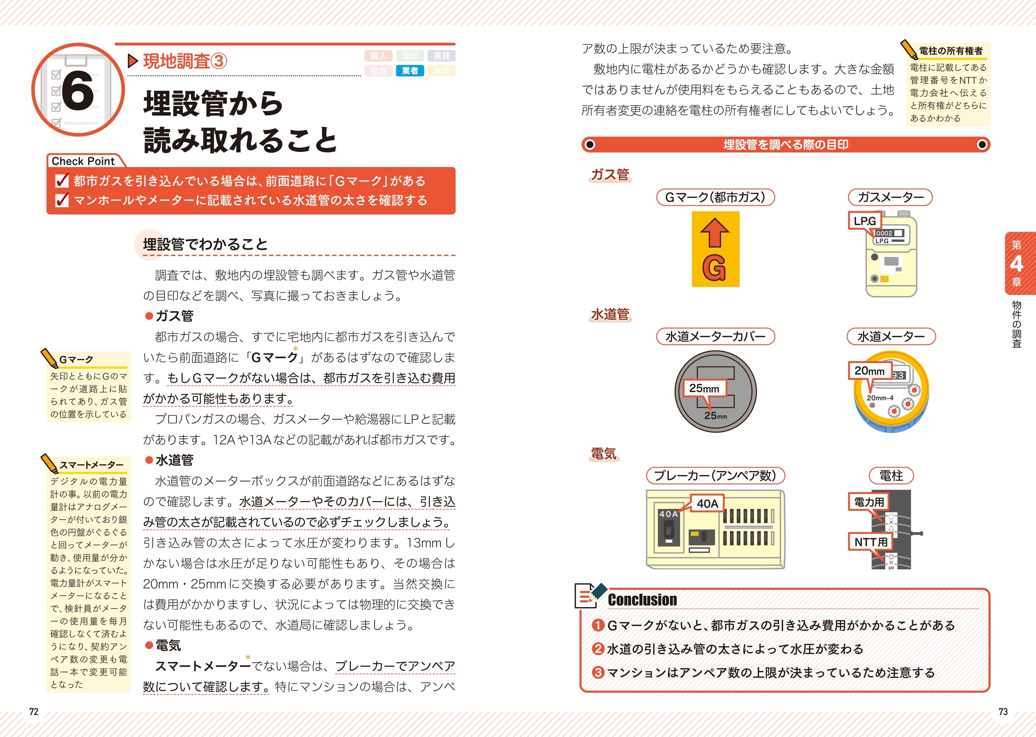 不動産に関わる人なら、現地に足を運んで見てまわることの大切さは、必ず知っておくべきこと。もちろん本書では現地調査のポイントも解説しています。