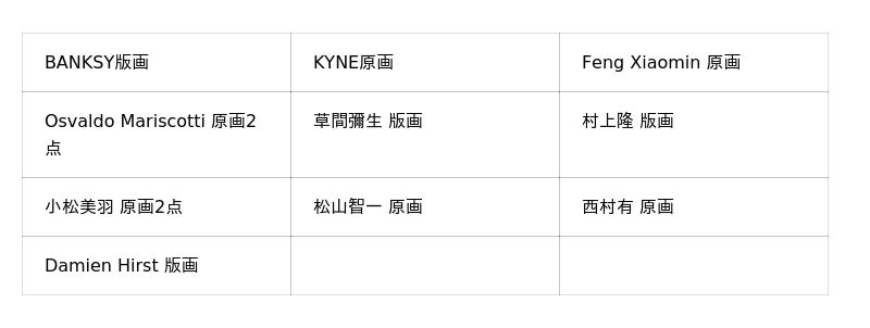 「アートビューイングイベント」には以下の作家の作品が展示予定です。