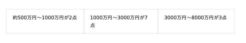 価格帯別の展示作品数は以下の通りです。