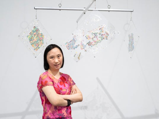 対照的に、ウォン氏の作品は、廃棄された掲示用紙を繊細な切り絵へと昇華させる、緻密な技術と詩的な感性が光ります。色彩や遊び心、丁寧な手仕事が融合した作品群には、彼女ならではの個性と直感的なデザインセンスがあふれています。シンガポール出身の彼女は、その鮮やかで洗練された表現により高く評価されており、2023年には「第1回 UOL × Art:Dis アート賞」にてグランプリを受賞。翌2024年には初の回顧展を開催し、約20年にわたる創作の軌跡をたどる約40点の作品が披露されました。またウォン氏の作品は現在、2025年大阪・関西万博のシンガポールパビリオン内のインスタレーションとしても展示されていて、その光と音のショーの創造的なインスピレーションとなり、多くの訪れる人を魅了しています。(関連サイト)