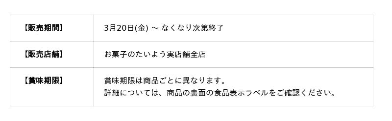 株式会社太陽社(所在地:千葉県匝瑳市飯倉293、代表取締役:片岡正裕)が展開する千葉県で長年愛される菓子店「お菓子のたいよう」から、待望の「2026年春のギフトコレクション」が登場しました。