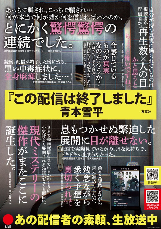 そんな超注目作『この配信は終了しました』を発売前に読んでくださった全国の書店員さんから寄せられたご感想の一部をご紹介します。