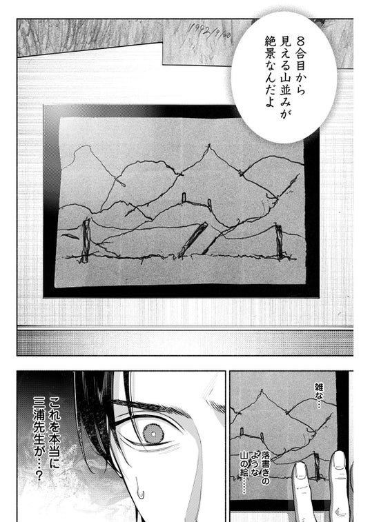 現場には、三浦が最期に描いたと思われるが絵が遺されていた。それは、レシートの裏に描かれたK山8合目から望む山並みのスケッチ。なぜ三浦は死の間際に、絵を遺したのか――。