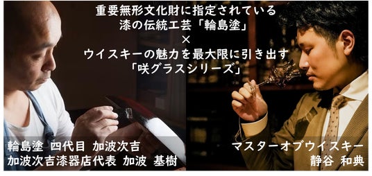 重要無形文化財に指定されている漆の伝統工芸「輪島塗」とウイスキーのポテンシャルを咲き誇らせる「咲グラスシリーズ」のコラボレーションモデルです。
