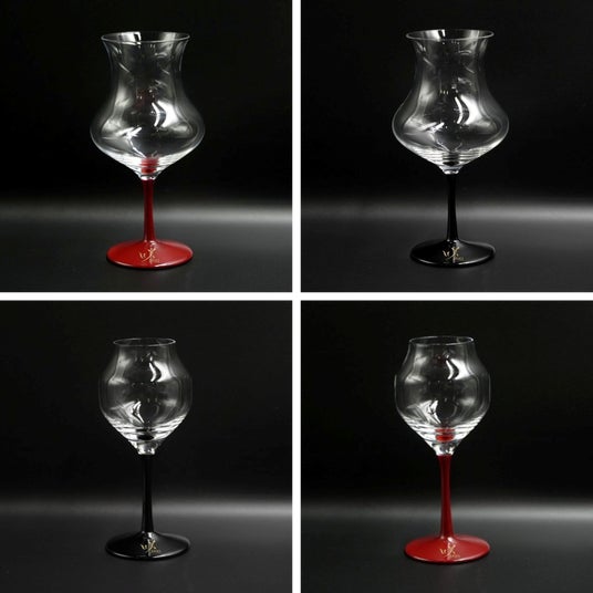 左上:咲グラス 輪島塗エディション <朱> 右上:咲グラス 輪島塗エディション <漆黒> 左下:蕾グラス 輪島塗エディション <漆黒> 右下:蕾グラス 輪島塗エディション <朱>