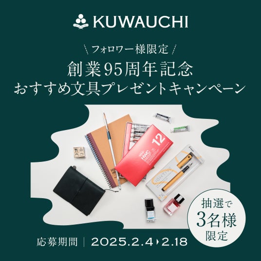 創業95周年を記念し、お客様に感謝を伝える<フォロワー様限定>のインスタグラムキャンペーンを実施します。学ぶとき、思考するとき、誰かに想いを伝えるとき、旅するとき、必ず近くにある文房具。暮らしに花を添えるおすすめの文具サンプルセットを抽選で3名様にプレゼントします。