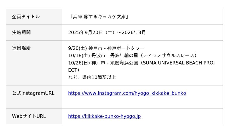 【開催概要】兵庫県「兵庫 旅するキッカケ文庫」メディア発表会