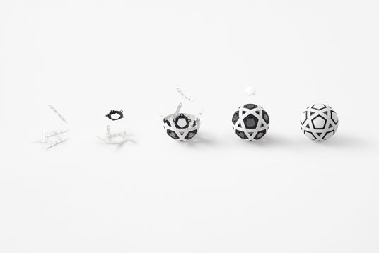 組み立て式サッカーボール『BALL KIT』は、日本館の総合プロデューサー / 総合デザイナーを務める佐藤オオキ氏(デザインオフィス nendo)との共同開発により誕生しました。空気不要のエアレス構造でメンテナンスが簡単、コンパクトに梱包できるため輸送効率にも優れています。