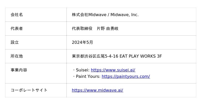 株式会社Midwave(本社:東京都渋谷区、代表取締役:片野 由勇岐、以下Midwave)は、2025年8月8日より、大切な写真を世界にひとつだけのアート作品にする絵画キット「Paint Yours(ペイントユアーズ)」の初となるTVCMを放映開始いたします。