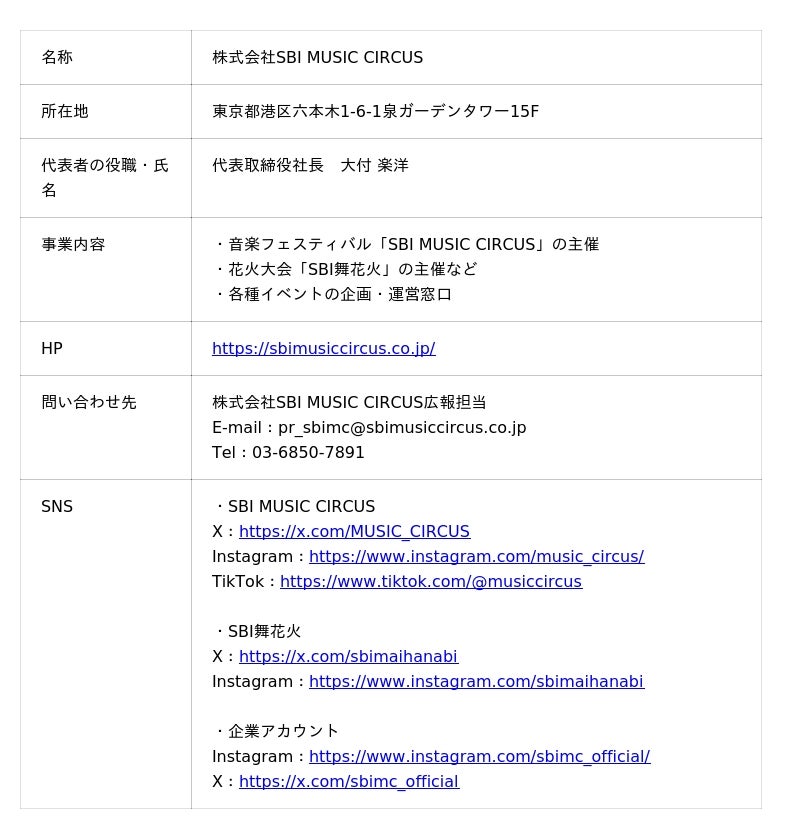 株式会社SBI MUSIC CIRCUS pr_sbimc@sbimusiccircus.co.jp 03-6850-7891