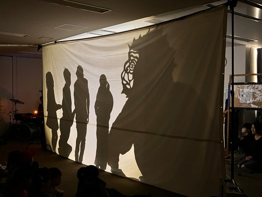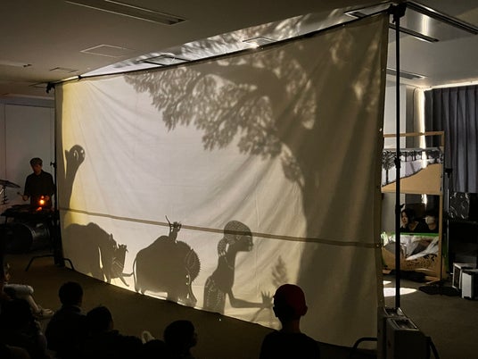 ー 島の名人から聞いた話を大きなスクリーンで影絵に ー