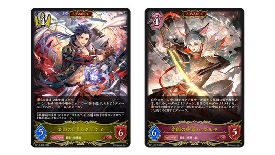 さらに、アドバンスカード『楽園の開闢・タケツミ』『楽園の終焉・イツルギ』は新規描き下ろしイラストで登場します。