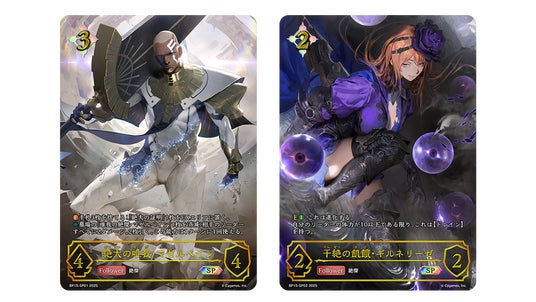 本商品のSPカードは『絶大の唯我・マゼルベイン』、『干絶の飢餓・ギルネリーゼ』の2種が描き下ろしイラストで収録されます。