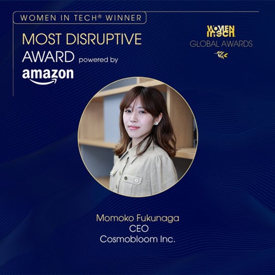 cosmobloom Inc. (Headquarters: Ota-ku, Tokyo; CEO: Momoko Fukunaga, hereinafter referred to as "cosmobloom"), a company dedicated to realizing large-scale structures in space, is pleased to announce that its CEO, Momoko Fukunaga, has become the first Japanese recipient of the Most Disruptive Award at the 7th edition of the Women in Tech(R) Global Awards, held in Paris in November 2024.