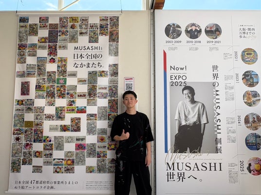 アーティストMUSASHI(株式会社石富プロパティー所属)が2025年7月9日・10日に大阪・関西万博のギャラリーWEST(約600平方メートル )にて『世界のMUSASHI個展』を堂々開催、終了した。MUSASHI個人の作品だけでなく、約150団体とのコラボレーション展示を実現し、2日間でのべ3万人が来場という予想以上の賑わいとなった。