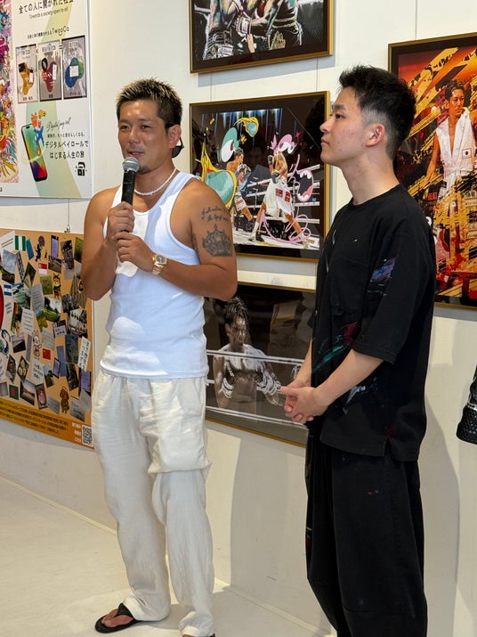 遡れば弊社株式会社石富プロパティーの代表取締役・中井健太がMUSASHIと出会ったのが約3年前。障がい福祉事業を中心に飲食事業、不動産事業など幅広く展開する中でMUSASHIと縁があり「障がい福祉×アートで世の中に革命を起こす」というビジョンを描いた。それに応えてMUSASHI自身も様々な葛藤や困難を乗り越えながら共に道を拓いてきた。その集大成として大阪・関西万博という世界の舞台でアーティストMUSASHIの夢が一つ実現したのである。