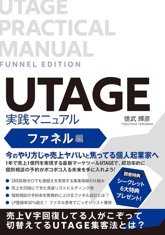 UTAGE認定アワード受賞・徳武 輝彦の書籍『UTAGE実践マニュアル ファネル編』が販売開始しました~購入者限定のシークレット6大特典も~