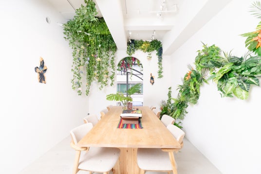 2階 窓の前まで緑が生い茂り没入感のある内装に。