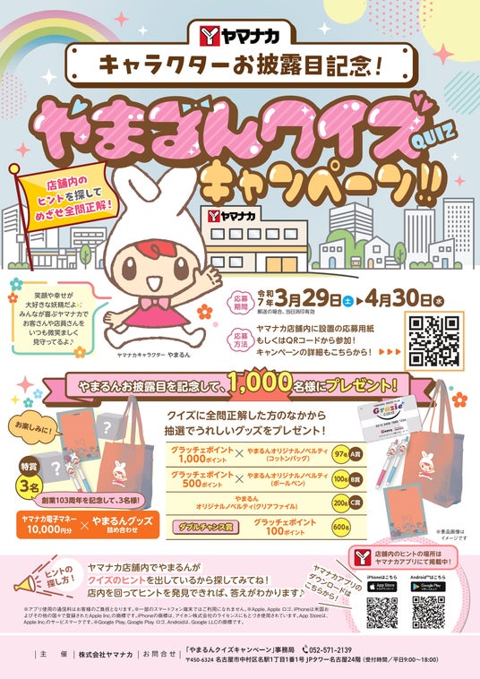 ヤマナカ店舗内でやまるんがクイズのヒントを出していますので、探してみてくださいね!