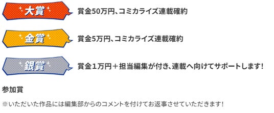 大賞、金賞、銀賞のうち金賞以上は連載決定!