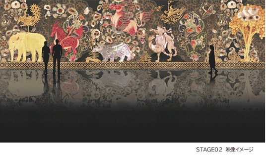 宝物を360度からスキャンした高精細な3Dデジタルデータに演出を施した展示では、宝物の細部や質感をリアルに感じることができます。また、正倉院事務所が研究・製作を進めてきた「再現模造」を、最新のデジタル制御による映像・音楽・照明との組み合わせで展示することにより、正倉院の世界に没入できる新たな鑑賞体験も提供します。気鋭のクリエーター陣が言葉や空間の演出を手がけた、まさにショーとしての華々しさに彩られた展示イベントです。
