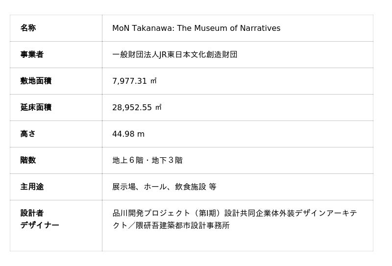 ※「MoN」、「MoN Takanawa」並びに「MoN Takanawa: The Museum of Narratives」は、一般財団法人JR東日本文化創造財団の登録商標です。