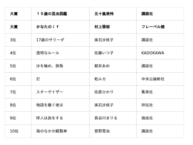 10代へ贈る新たな文学賞、第1回未来屋アオハル文学賞大賞は五十嵐美怜さん『15歳の昆虫図鑑』、村上雅郁さん『かなたのif』2作品に決定!