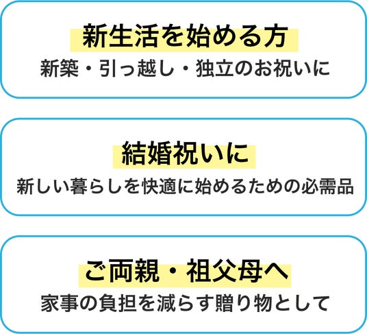 奥様への感謝を込めて、お母様へのサプライズに、新生活を始める方への贈り物に。毎日使える贈り物だから、想いも伝わる特別なプレゼントになります。