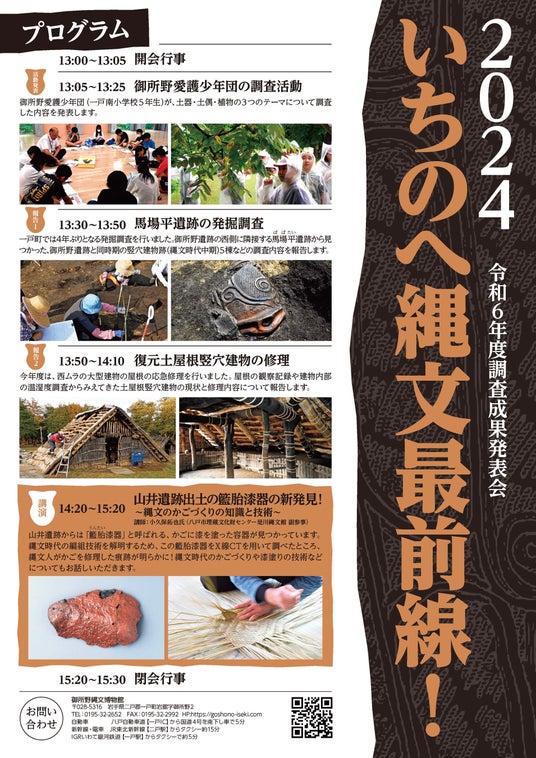 発表会に関するお問合せは、御所野縄文博物館(0195-32-2652)までご連絡ください。