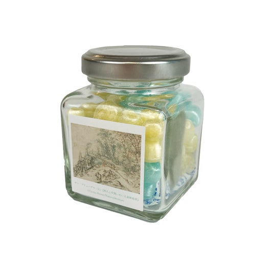 ヤン・ブリューゲル(父)《旅人と牛飼いのいる森林地帯》をイメージしたカラーの本展オリジナルキャンディ。