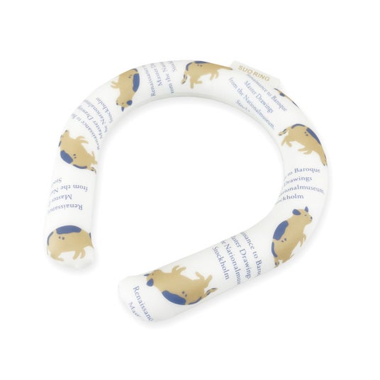 首の付け根を冷やし、身体全体を効果的に冷却するSUO RINGに、コルネリス・フィッセル《眠る犬》をモチーフとした可愛い犬を散りばめました。
