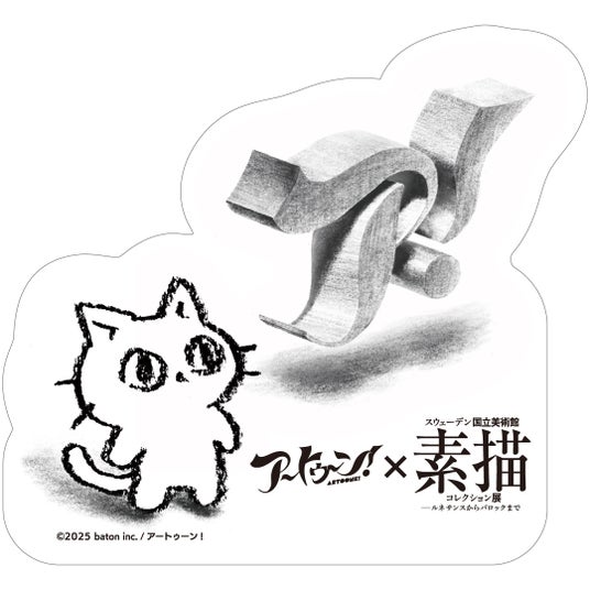 アートゥーン!メンバーの林さんが鉛筆で描きおろした「素描風」オリジナルの「アートゥーン!」ロゴと本展公式キャラクター「すねこ(愛称:すにゃこ)」がコラボした限定デザインです。