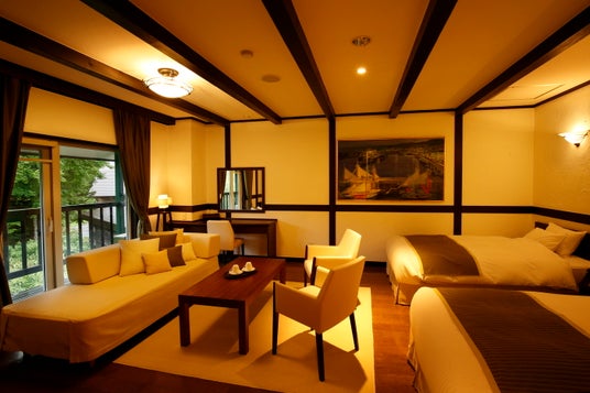 地元の食材にこだわったお料理や、木の温もりに満ちた客室に、渓流に面した露天風呂。