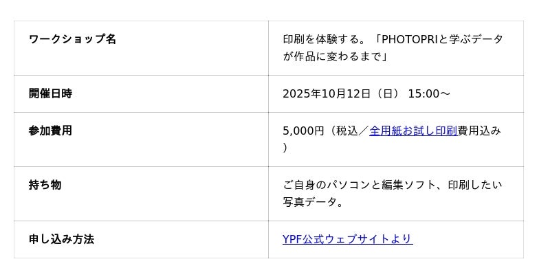 本ワークショップは、こうした「印刷の壁」を取り払い、すべての写真愛好家が自信を持って作品づくりに臨めるようになることを目指し、印刷のプロフェッショナルであるPHOTOPRIが企画しました。