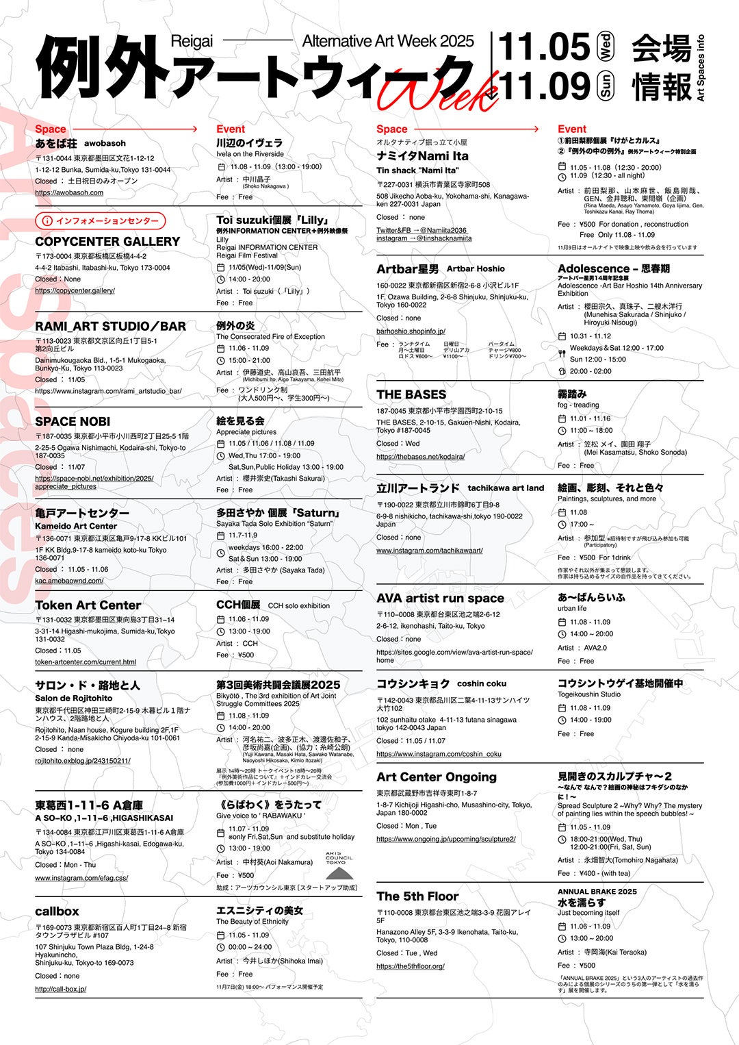 「例外アートウィーク2025」が2025年11月5日~9日まで開催!COPYCENTER GALLERY(東京/板橋)をインフォメーションセンターに据え、東京近郊のオルタナティブスペースが多数参加。
