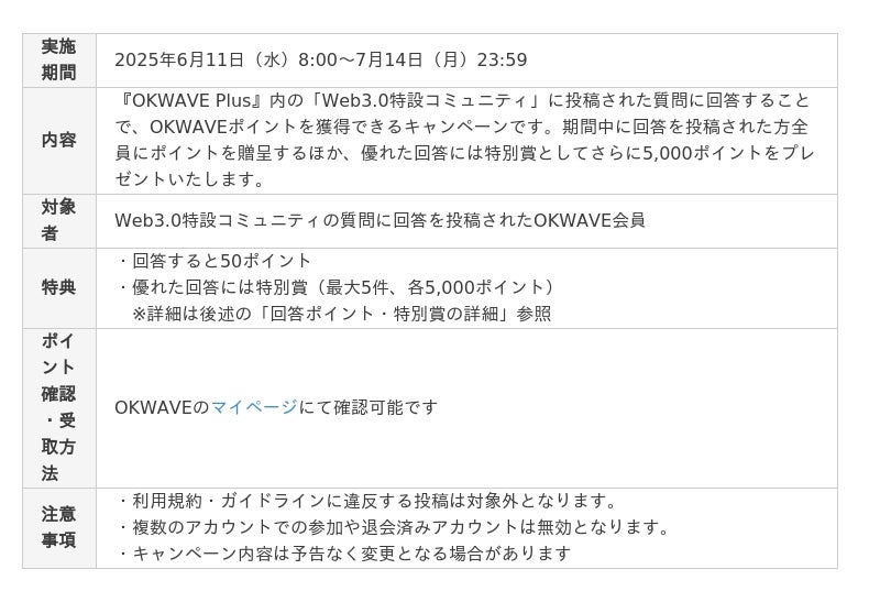 ・対象条件:OKWAVE会員として有効なアカウントであること
